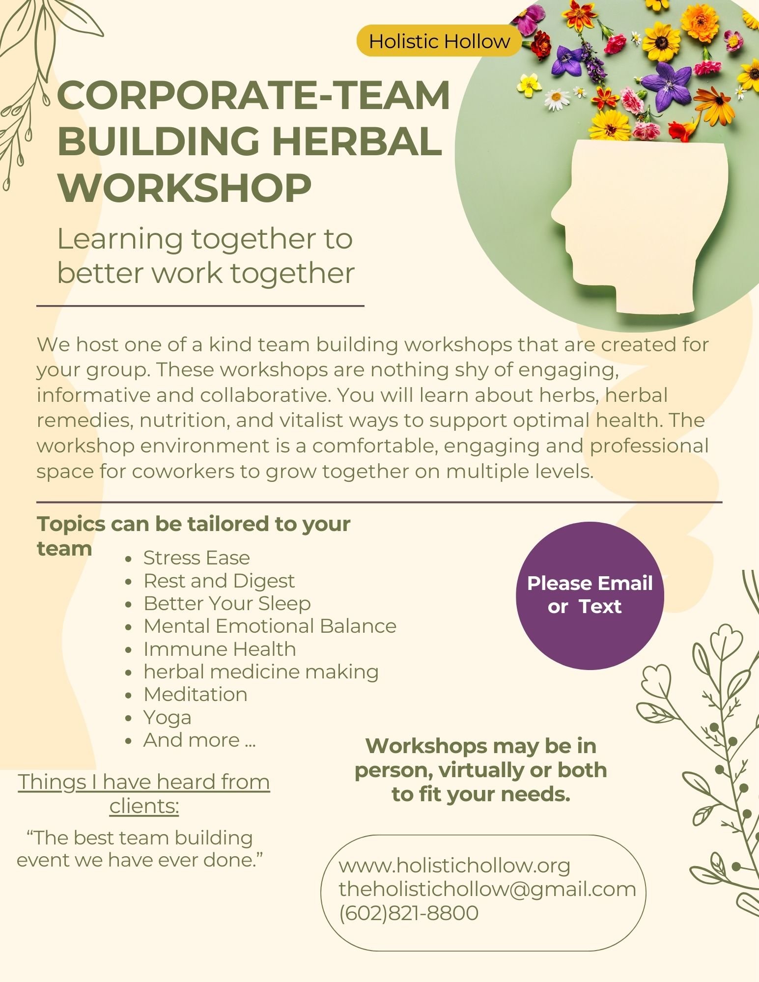 Some of our workshops will include multiple teachers to draw in links to other fields that I do not have education in. For instance if we are linking astrology with herbs I will be sure to have our astrologist there as that is not my scope of practice or if there is a body work link that is not within my training I will have a body worker there to teach that end of the seminar.